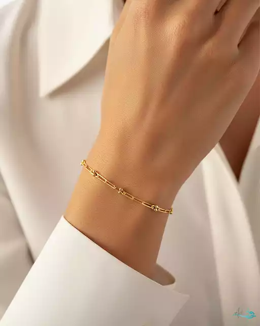 دستبند طلا زنجیری گیره کاغذی و مکعب