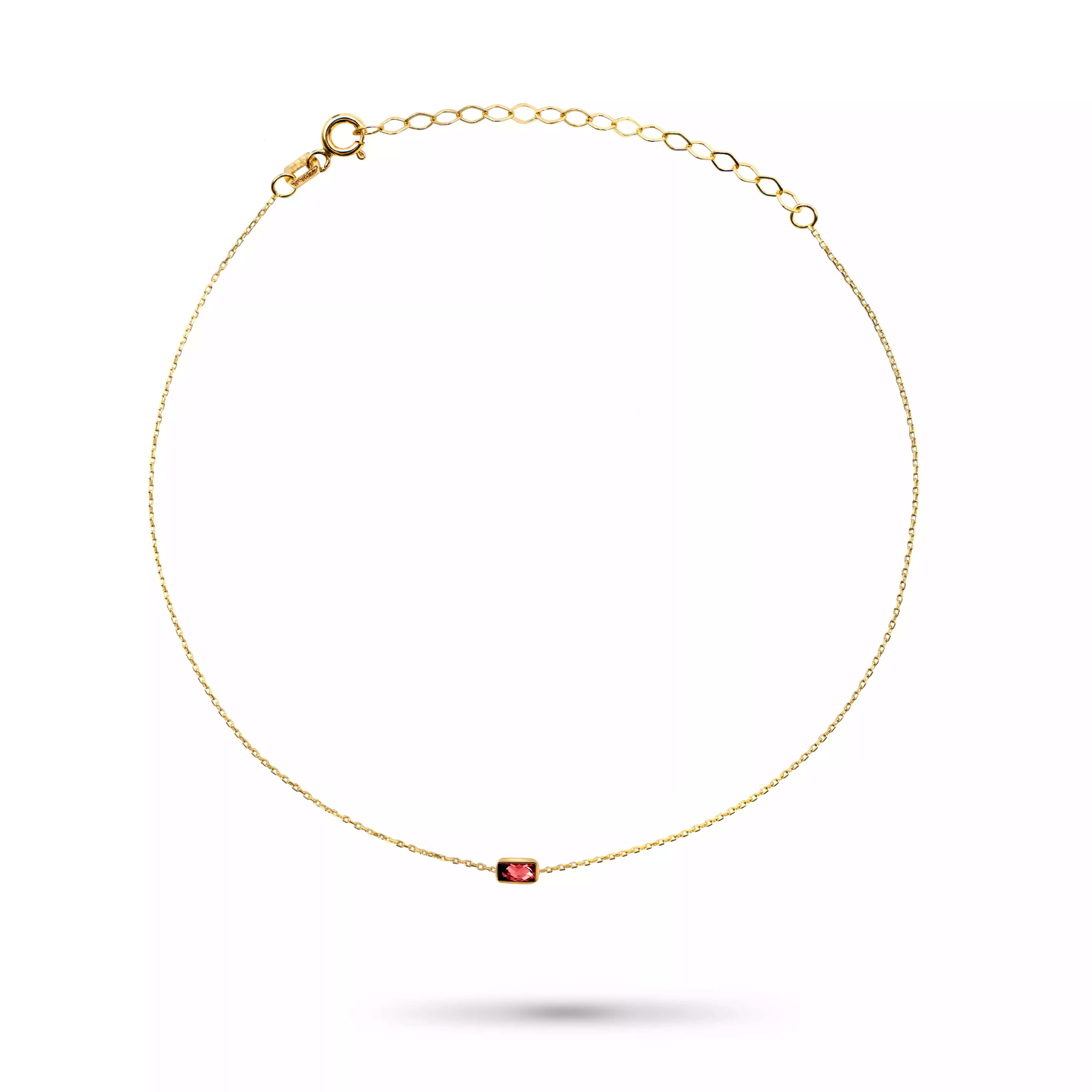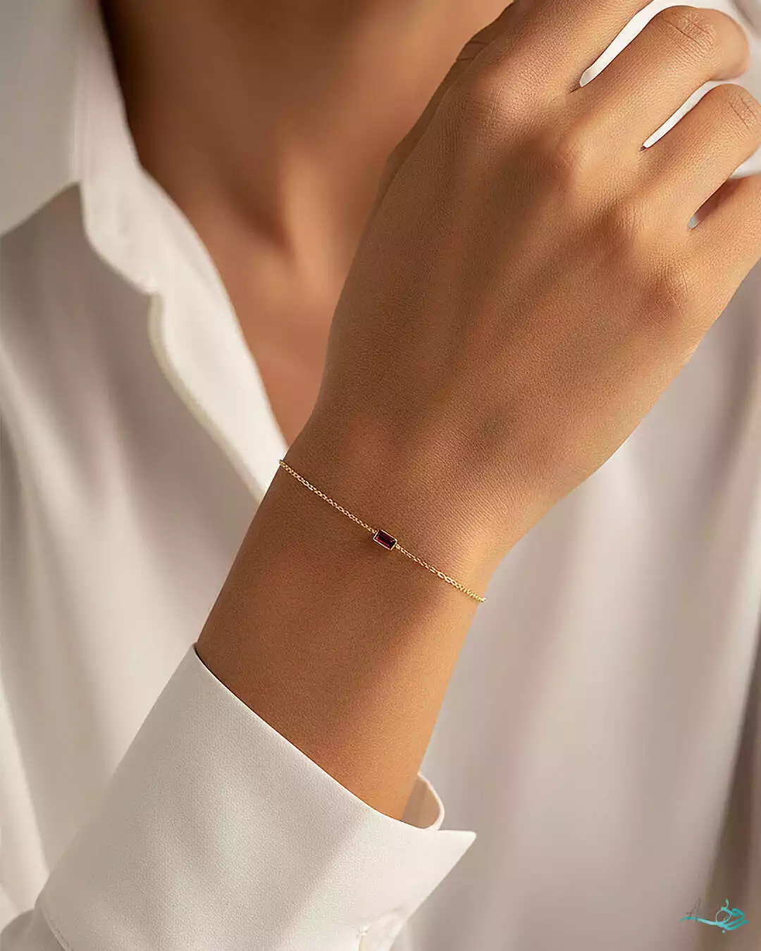 «دستبند طلا باگت قرمز» با طراحی فوقالعاده مینیمال و یک نگین قرمز تراش باگت درخشان، برای آنهاییست که با یک اشاره کوچک، حرفهای بزرگی میزنند. این رنگ، یادآور عشق، انرژی، قدرت و شور زندگی است—در کنار زنجیر طلایی نازک، استایلی کاملاً خاص میسازد.