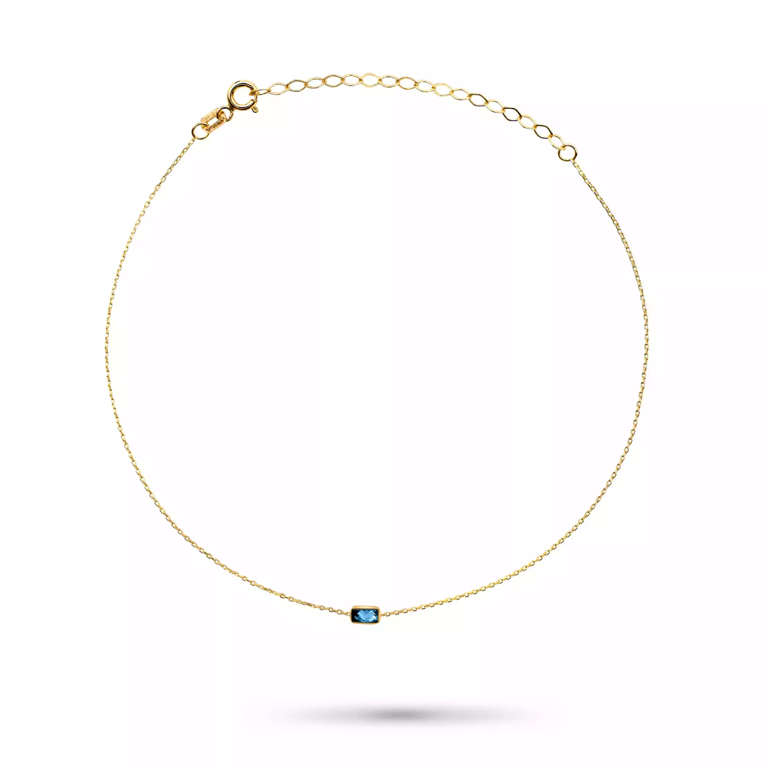 «دستبند طلا باگت آبی» با یک نگین تراشخورده مستطیلی به رنگ آبی، نمایانگر تعادل، آرامش درونی و اصالت است. طراحی مینیمال آن در کنار رنگ خاص سنگ، یک ترکیب بینظیر برای بانوانیست که در سادگی، زیبایی را پیدا میکنند.
