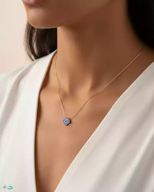 - گردنبند طلا زنجیری ونکلیف میناکاری آبی