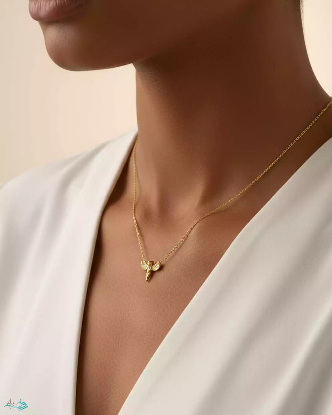 گردنبند طلا زنجیری فرشته با نگین