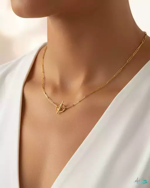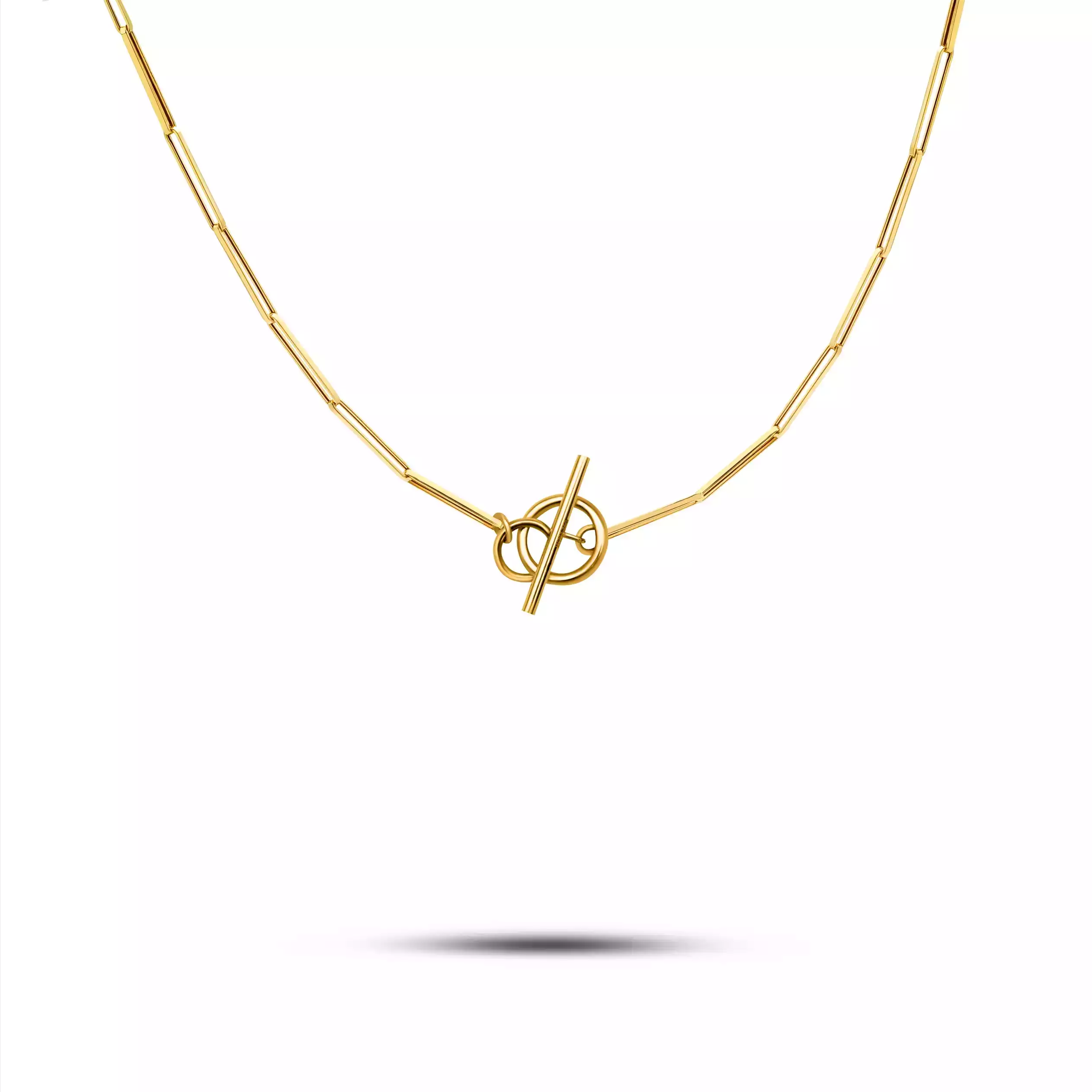 - گردنبند طلا زنجیری گیره کاغذی قفل تی