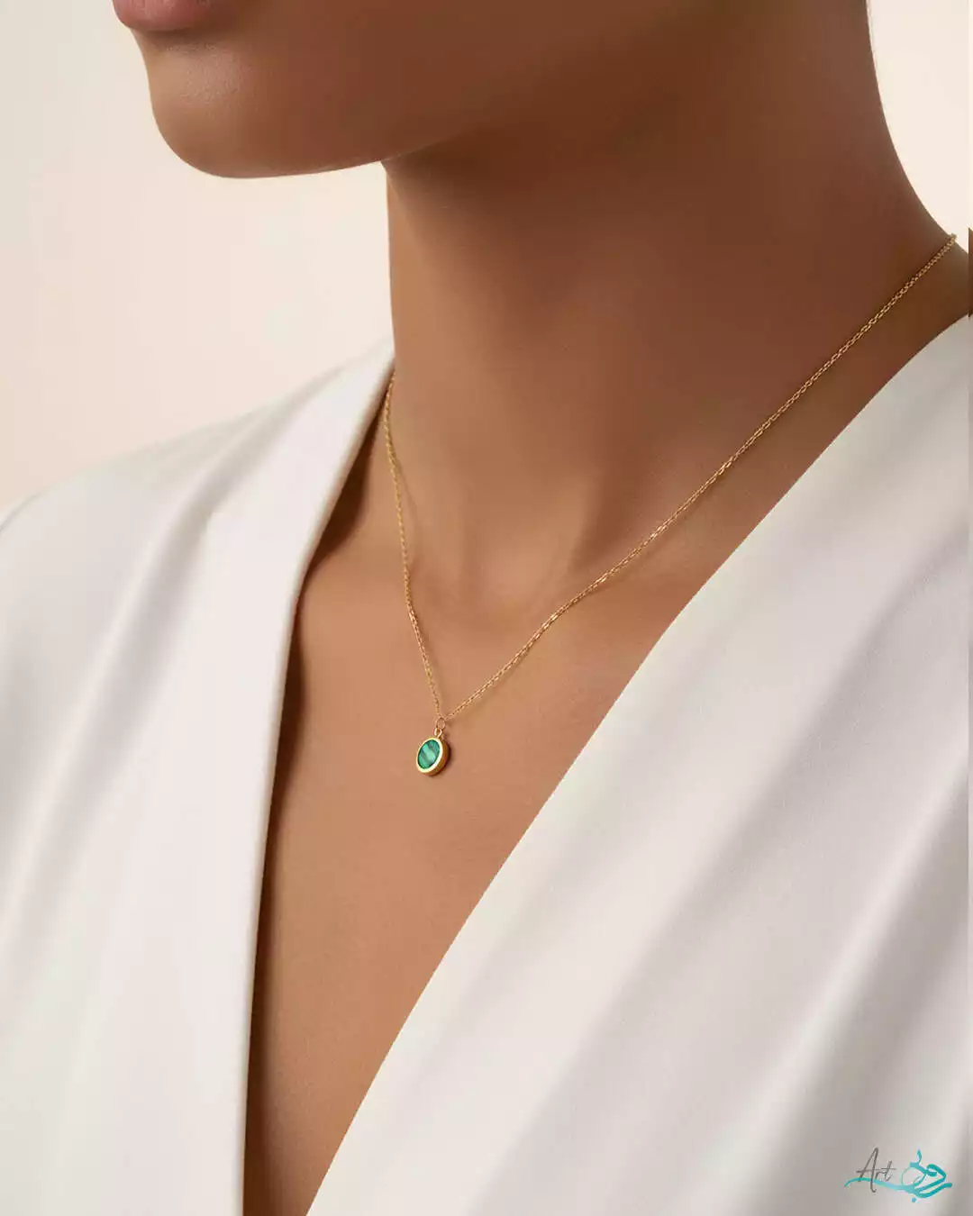 • ترکیب با زنجیر طلای ظریف ۴۵ یا ۵۰ سانتیمتری برای جلوهای لطیف