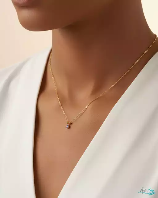 • زنجیر ظریف طلای ۱۸ عیار، طول ۴۵ سانتیمتر (قابل تنظیم تا ۴۲ سانتیمتر)