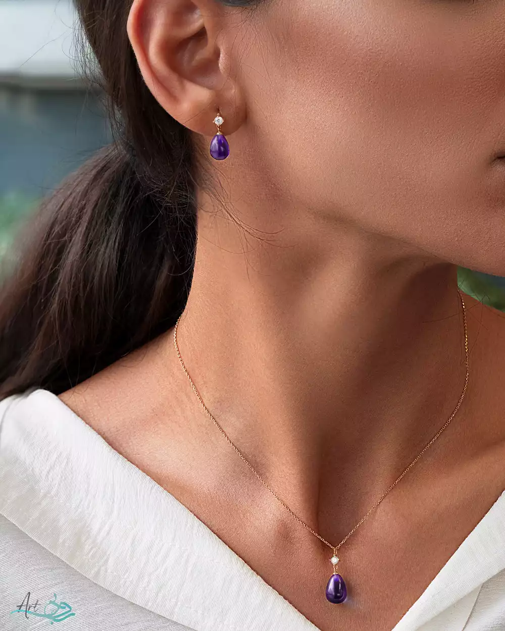 • قابل ست با گوشواره یا انگشتر بنفش یا نگیندار