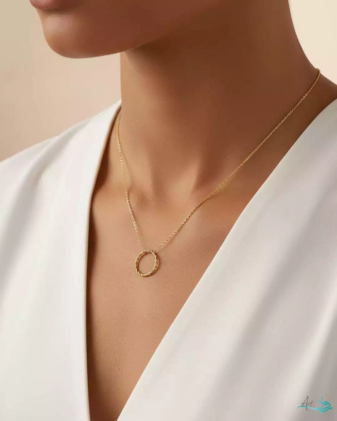 • آویز دایرهای با بافت پیچخورده از طلای ۱۸ عیار