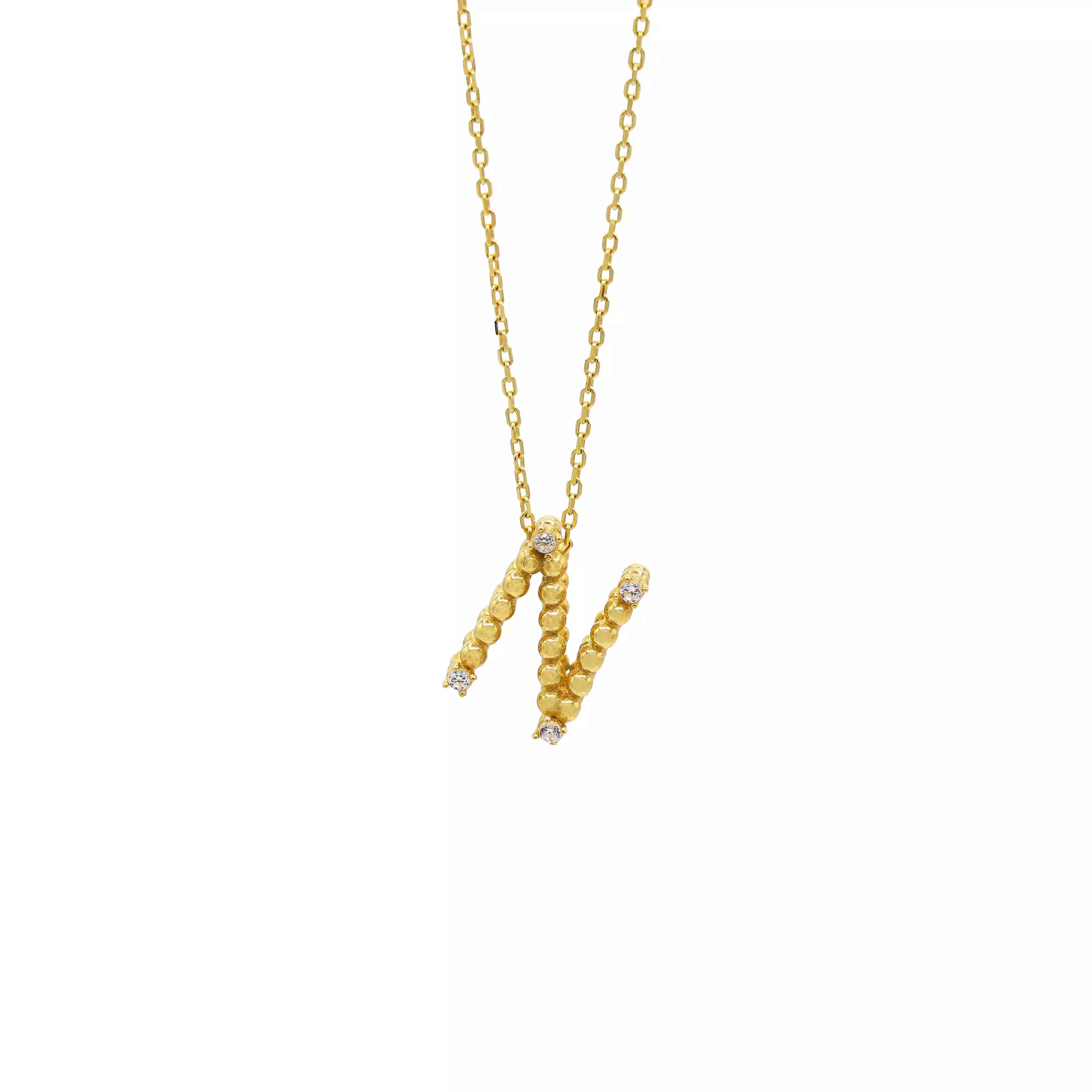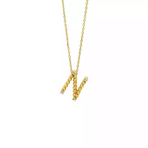 اگر بهدنبال یک گردنبند با طراحی خاص و شخصی هستید، «گردنبند طلا زنجیری N دات» با آویز حرف N ساختهشده از دایرههای طلایی و دو نگین انتهایی، انتخابی خاص برای استایل روزمره یا هدیهای به کسی با حرف N است.