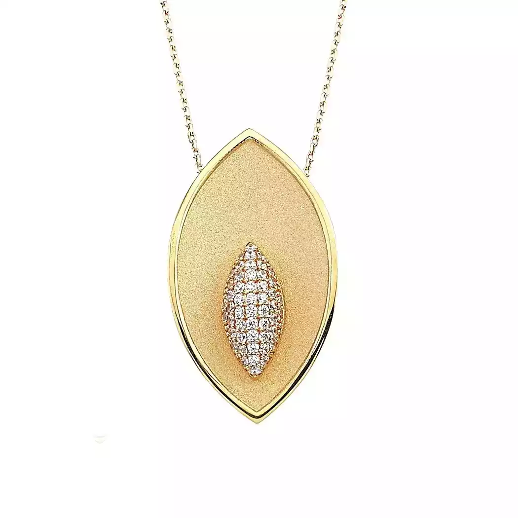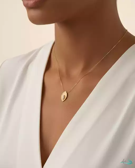 «گردنبند طلا برگ با نگین سفید» ترکیبی بینظیر از بافت مات و درخشش نگینهای سفید است. فرم بیضیشکل برگ، در مرکز خود برگ نگینکاریشدهای دارد که همچون قطرهای از نور، در قلب این طراحی جا گرفته. انتخابی خاص برای بانوانی که بهدنبال جلوهای متمایز هستند.