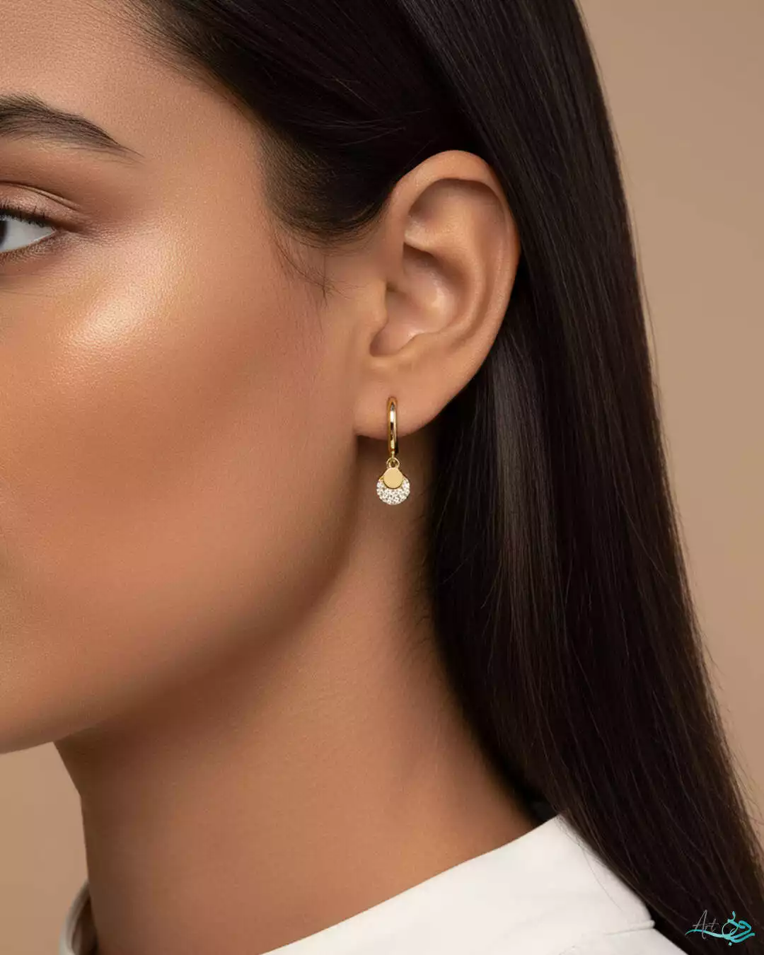 - گوشواره طلا کلیپسی با آویز دایره و نگین