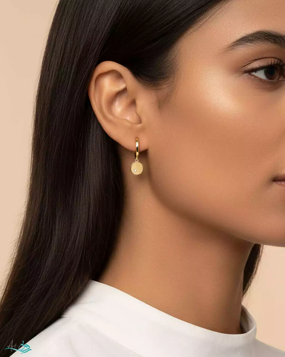 - گوشواره طلا کلیپسی با آویز دایره
