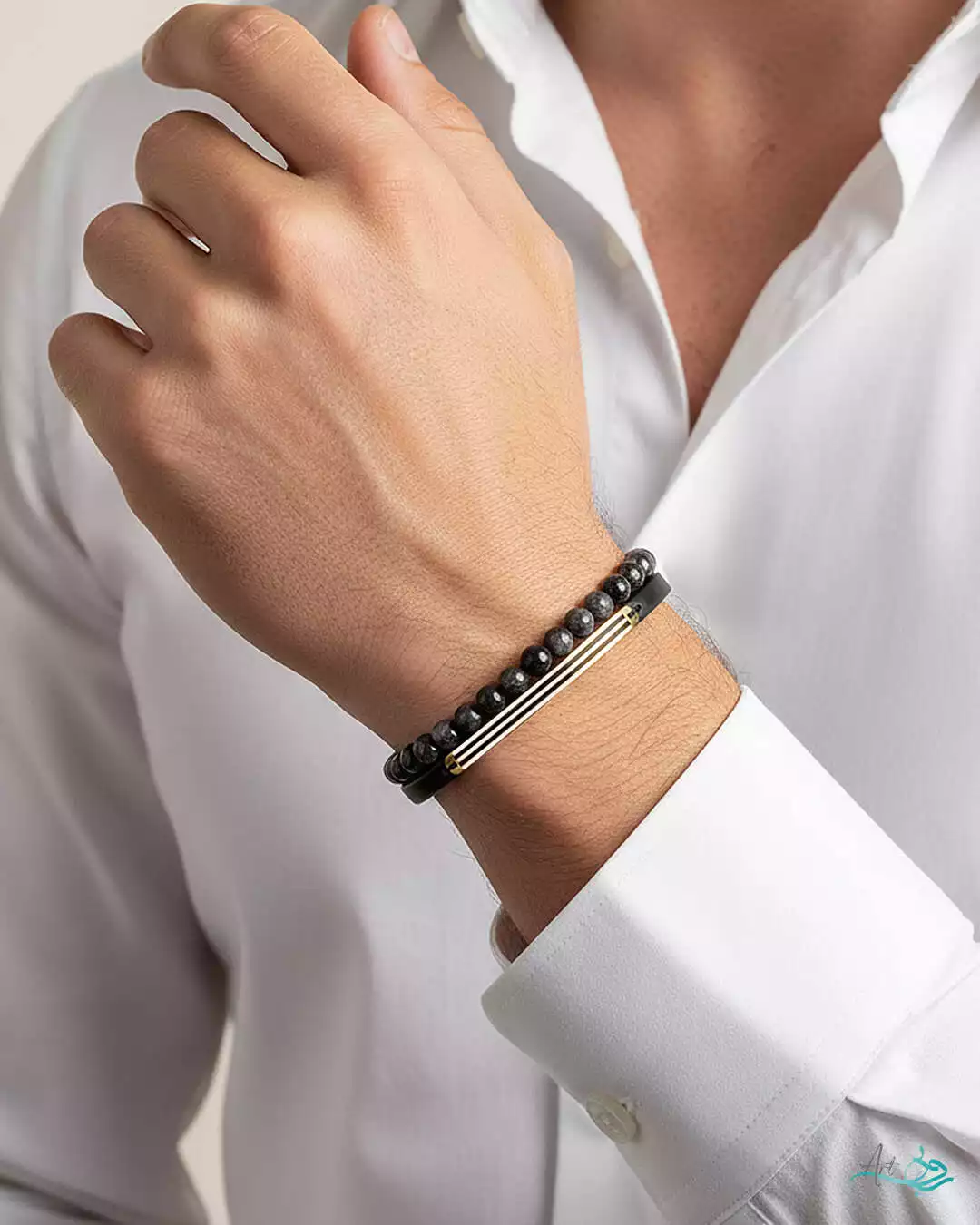 - دستبند چرم و طلا تخت و سنگ انیکس