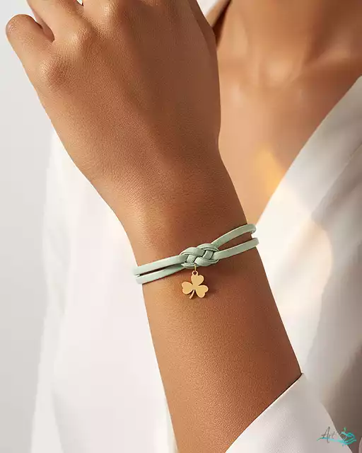 دستبند طلا چرم گره آویز شبدر
