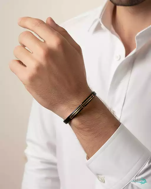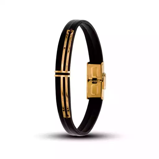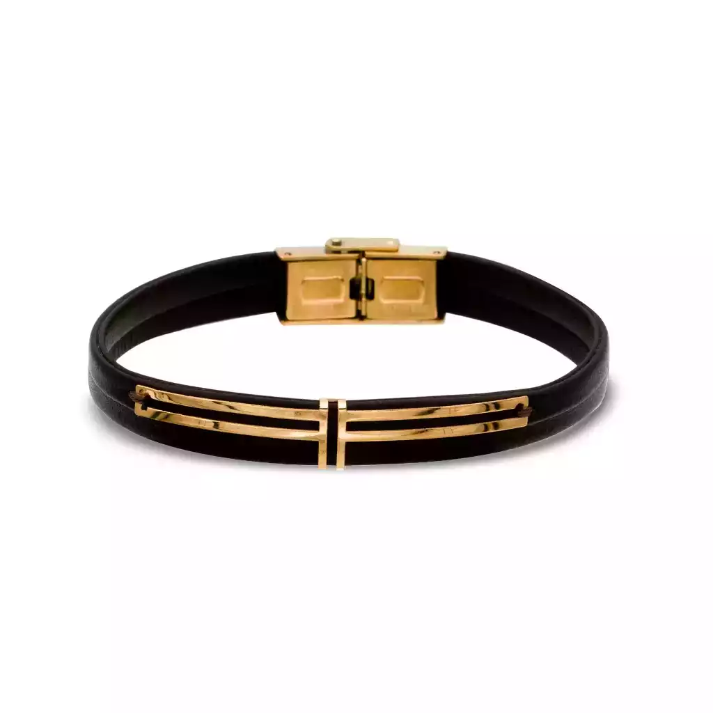 دستبند چرم و طلا مینیمال خط