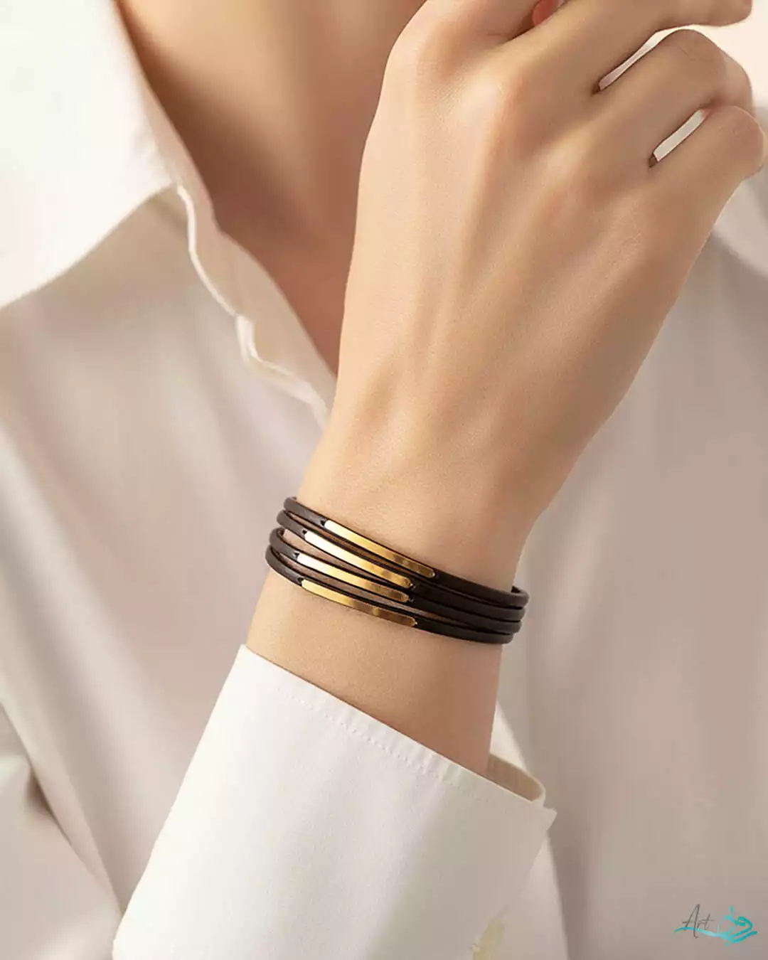 دستبند طلا چرم زنانه چهار لاین