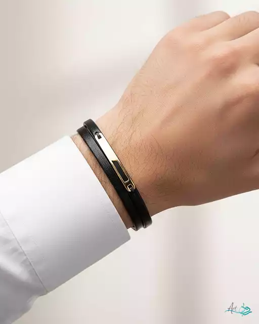 دستبند چرم و طلا خط مردانه