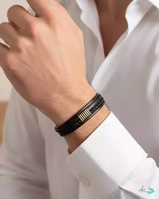 دستبند طلا چرم چند لاین
