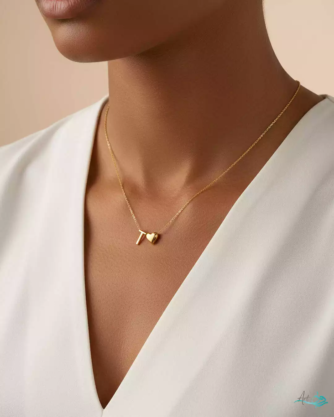 گردنبند طلا حروف T و قلب