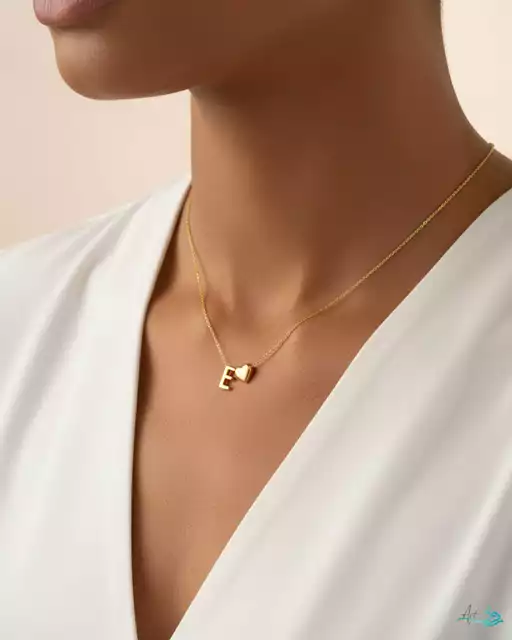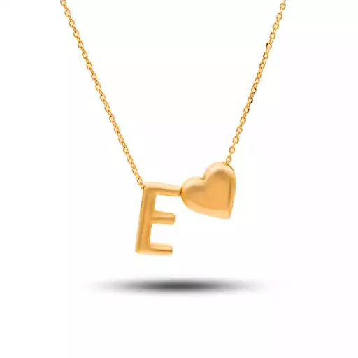 گردنبند طلا حروف E و قلب