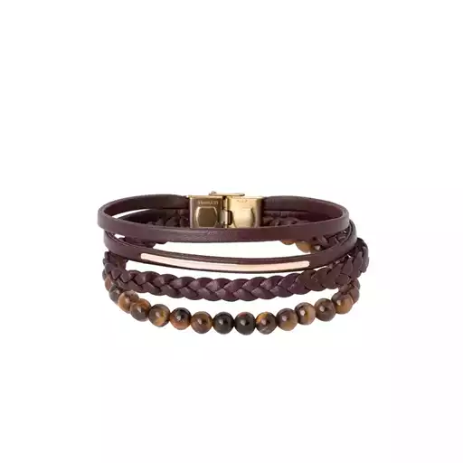 دستبند سه دور طلا سنگ اونیکس و چرم بافت