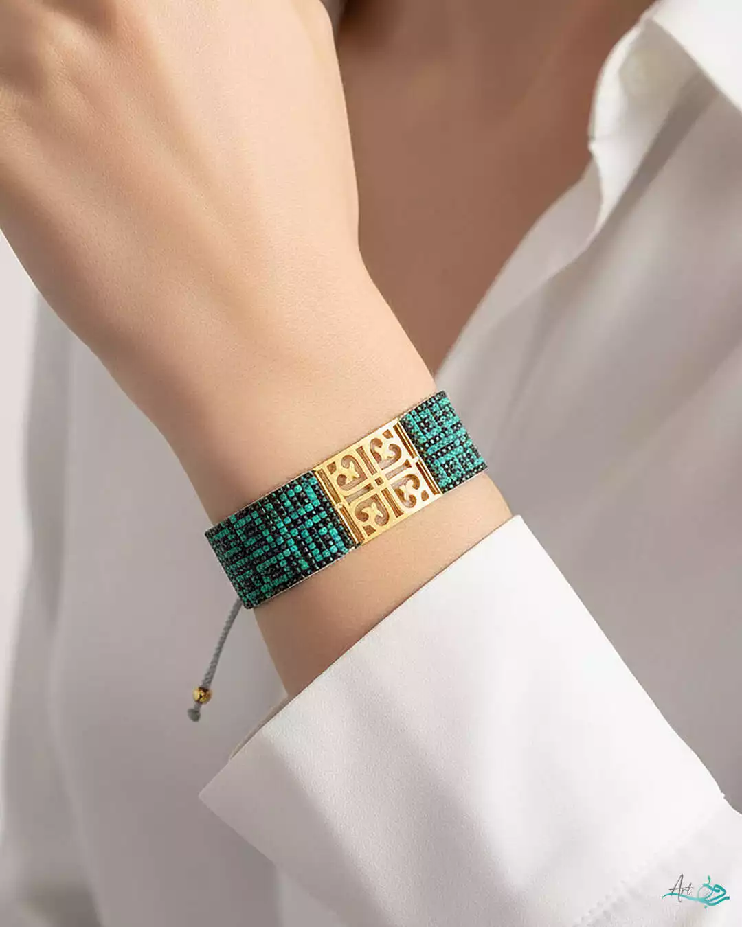 دستبند طلا بافت میوکی رخشان فیروزه ای