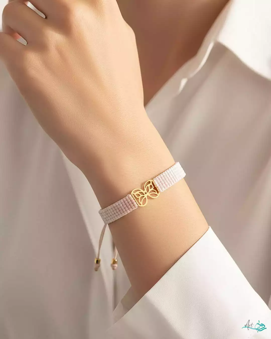 دستبند طلا بافت میوکی پروانه پرنیان صورتی