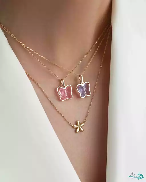 - آویز طلا پروانه سواروسکی یاسی 10 میل