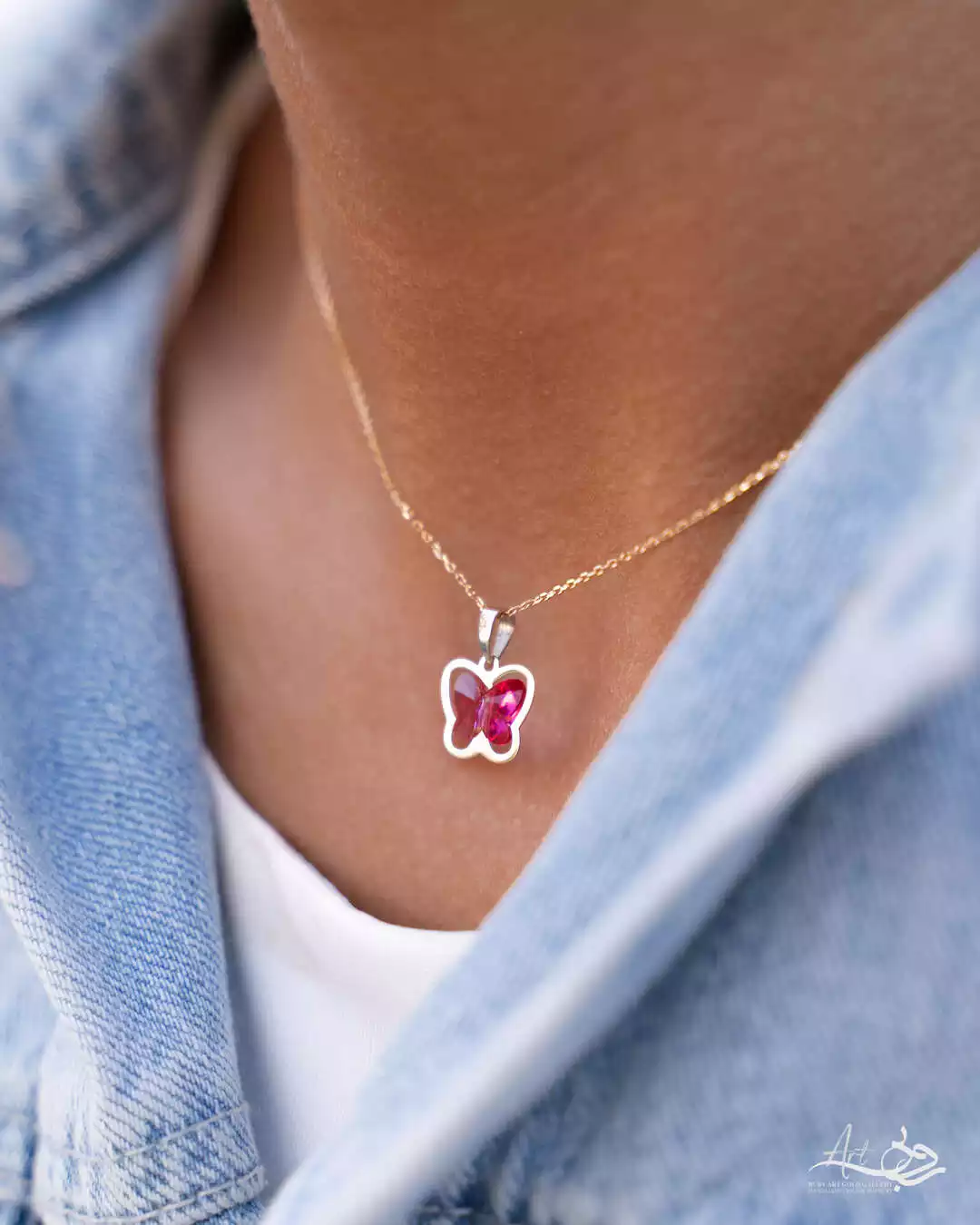 - آویز طلا پروانه سواروسکی سرخابی 10 میل