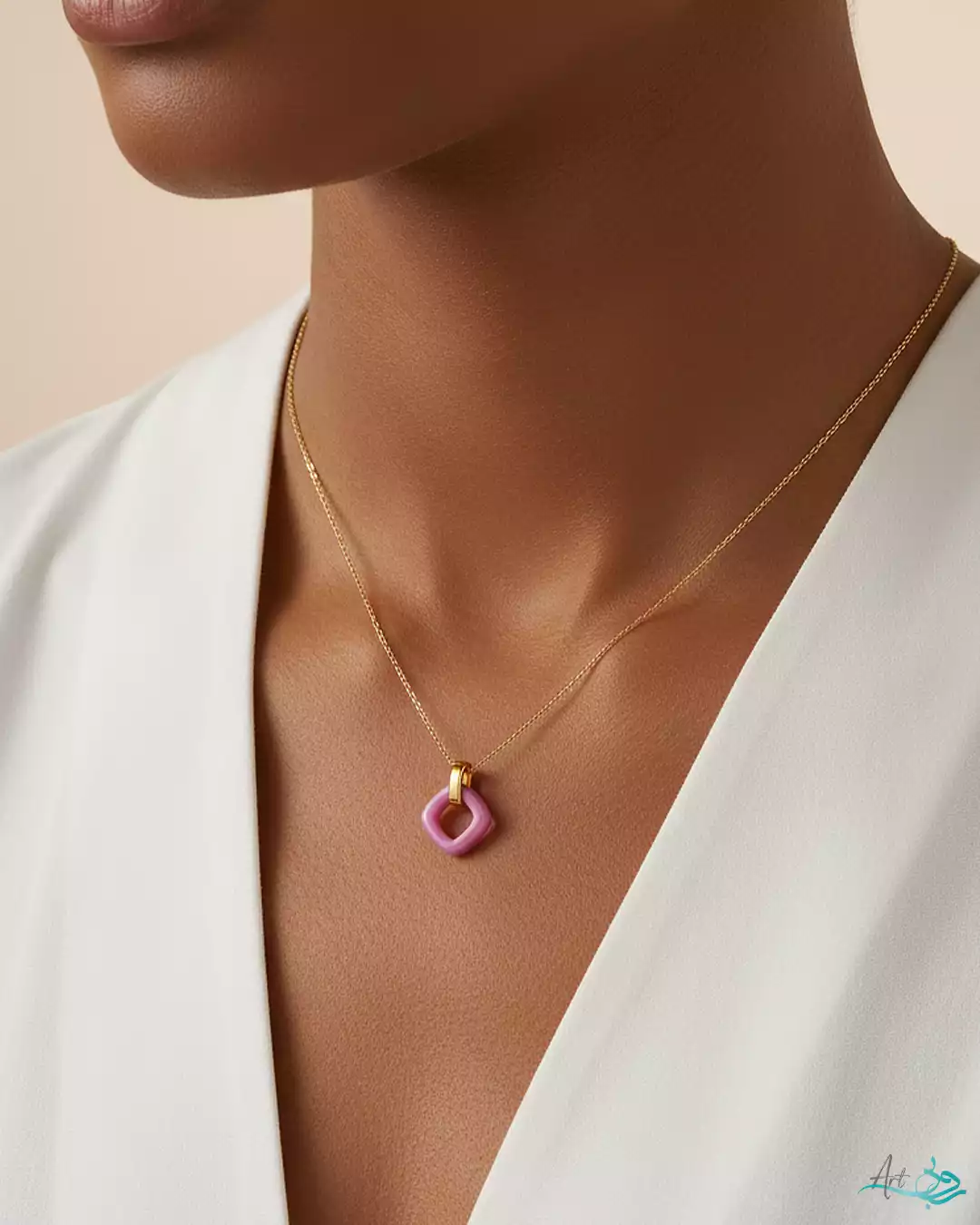 آویز طلا لوزی لونا صورتی