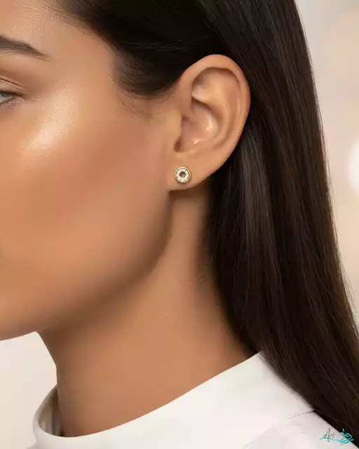 گوشواره طلا میخی دایره نگین دار