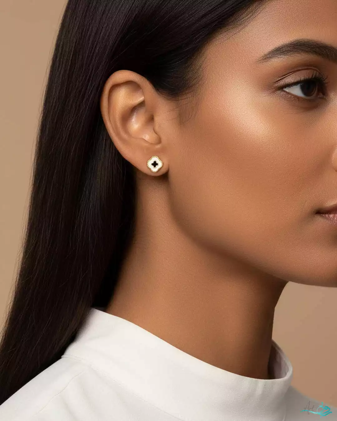 ✨ گوشواره طلا میخی ونکلیف با میناکاری سفید و سیاه | ترکیب کلاسیک و مدرن