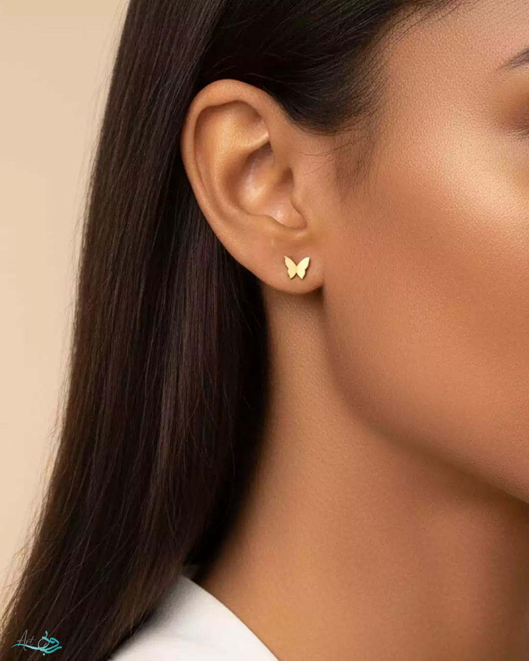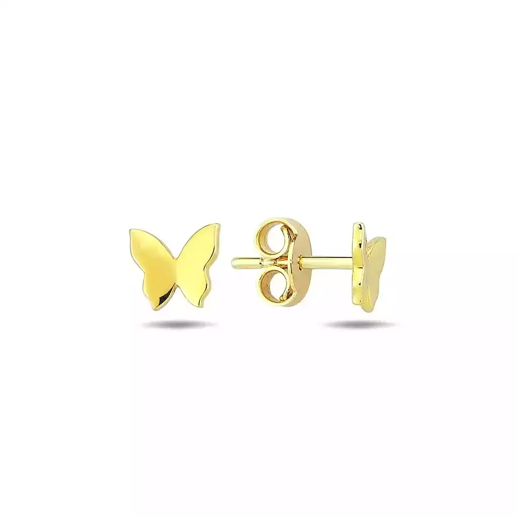 گوشواره طلا میخی پروانه آینه ای