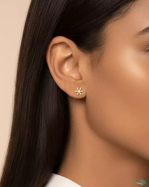 گوشواره طلا میخی شکوفه نگین دار