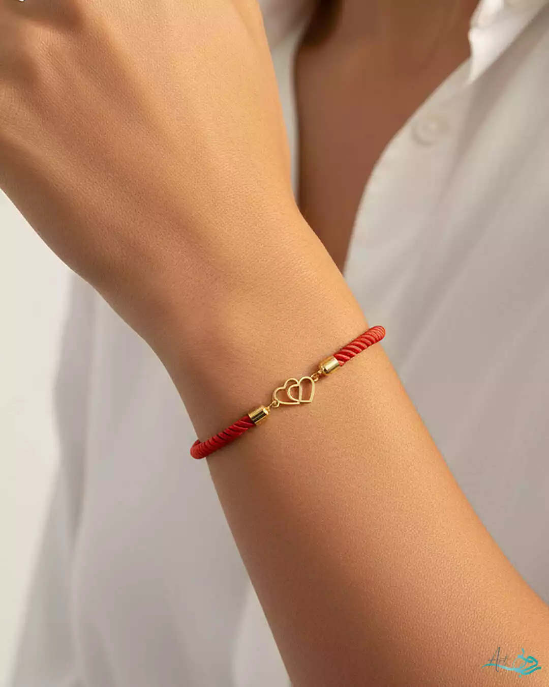 دستبند طلا بافت آسانسوری دو قلب